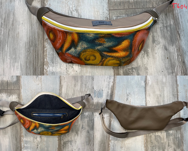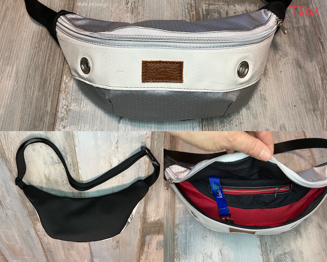 Ob klein oder groß, die Bauchtasche bietet umfangreiche Möglichkeiten, Upcycling Materialien miteinander zu kombinieren. Luftmatratzen-Stoff, Turnmatte, Kinioleinwand, Markisen-Stoff oder nur aus Leder, der Phantasie sind keine Grenzen gesetzt.